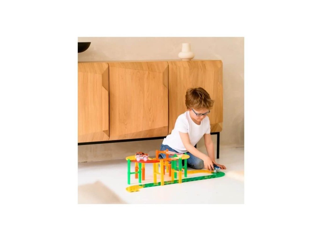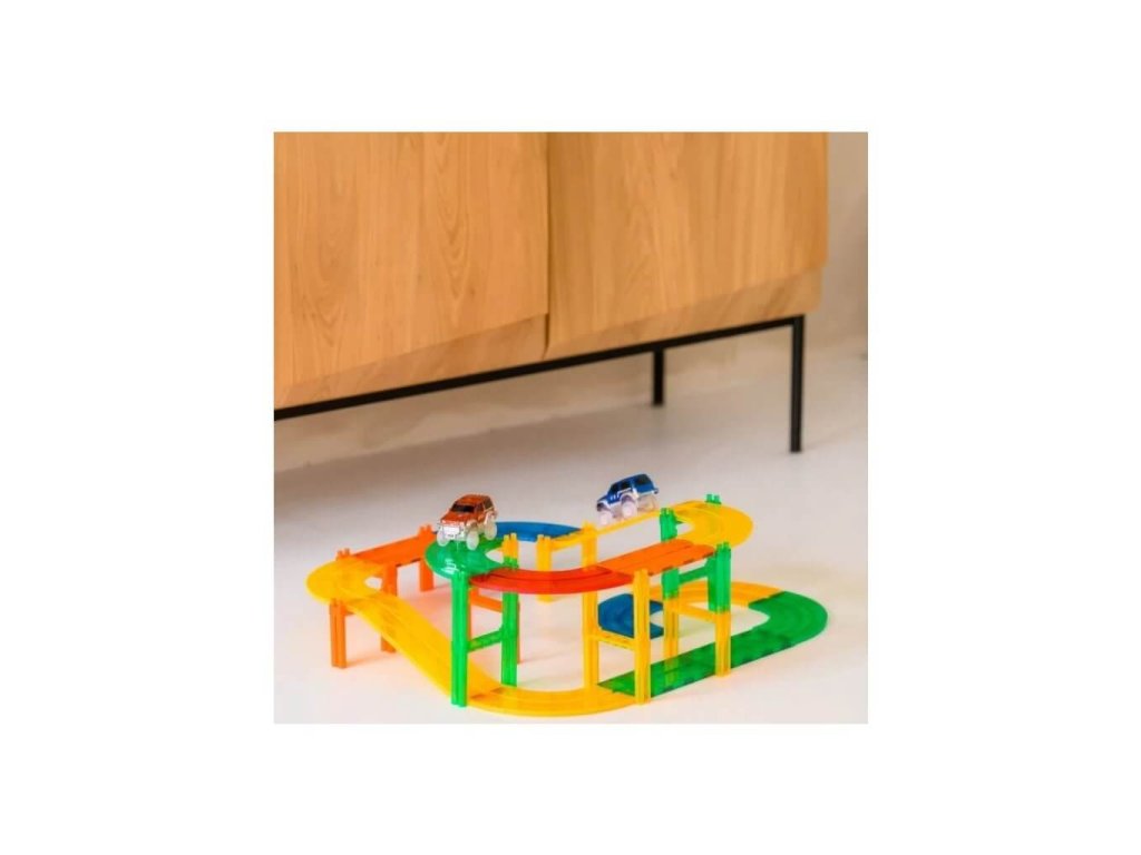 Tento set obsahuje 70 dielikov, ktoré umožňujú deťom vytvárať rôzne pretekárske dráhy, mosty a prekážky. Vďaka magnetickým spojom sú dieliky ľahko a bezpečne spájateľné, čo deťom umožňuje tvoriť rôzne konfigurácie a modely.