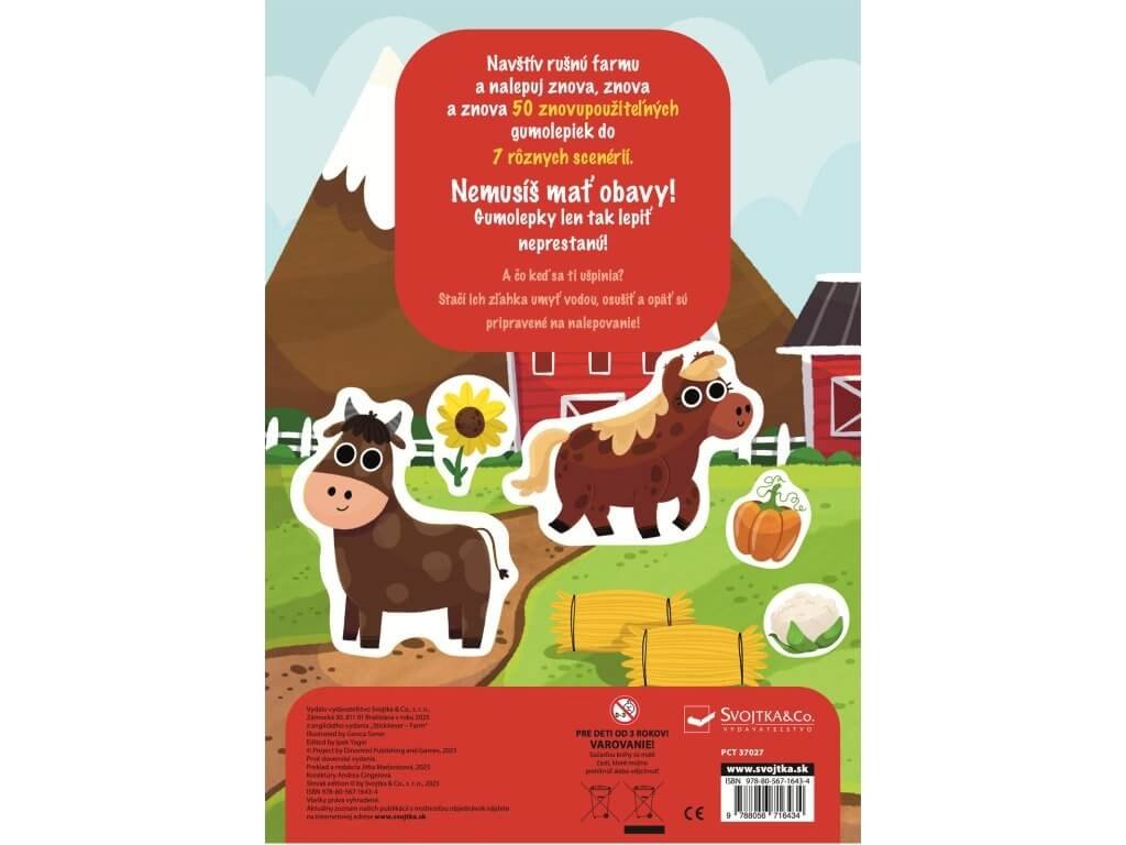 Nalep, odlep, nalep – Gumolepky: Farma od značky Svojtka je hravý zošit s opakovane použiteľnými gumolepkami, v ktorom deti objavujú život na farme.