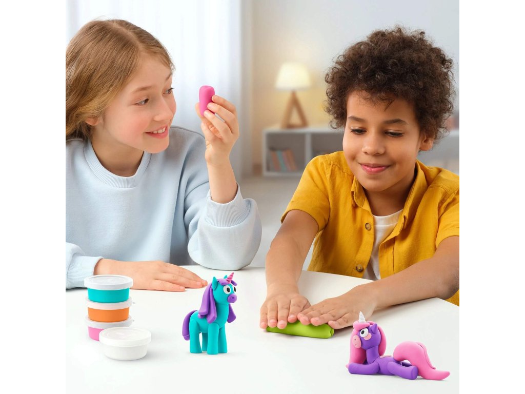 Jednorožce od značky Hey Clay je kreatívna súprava, ktorá spája klasickú hru s plastelínou a modernú technológiu.