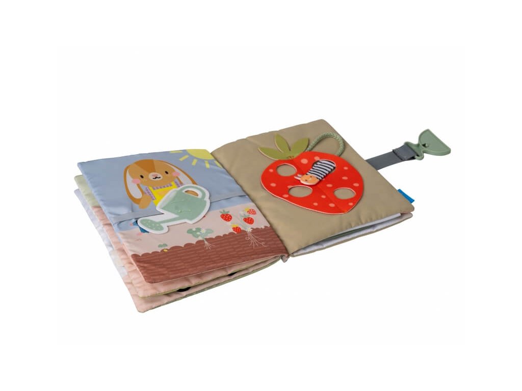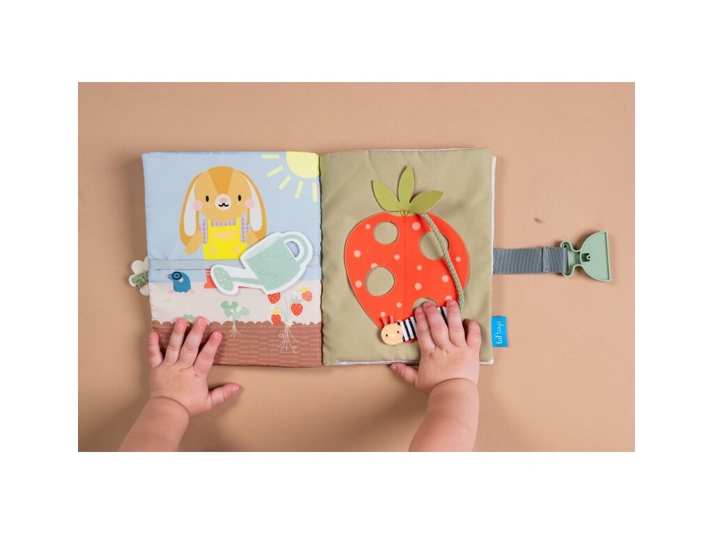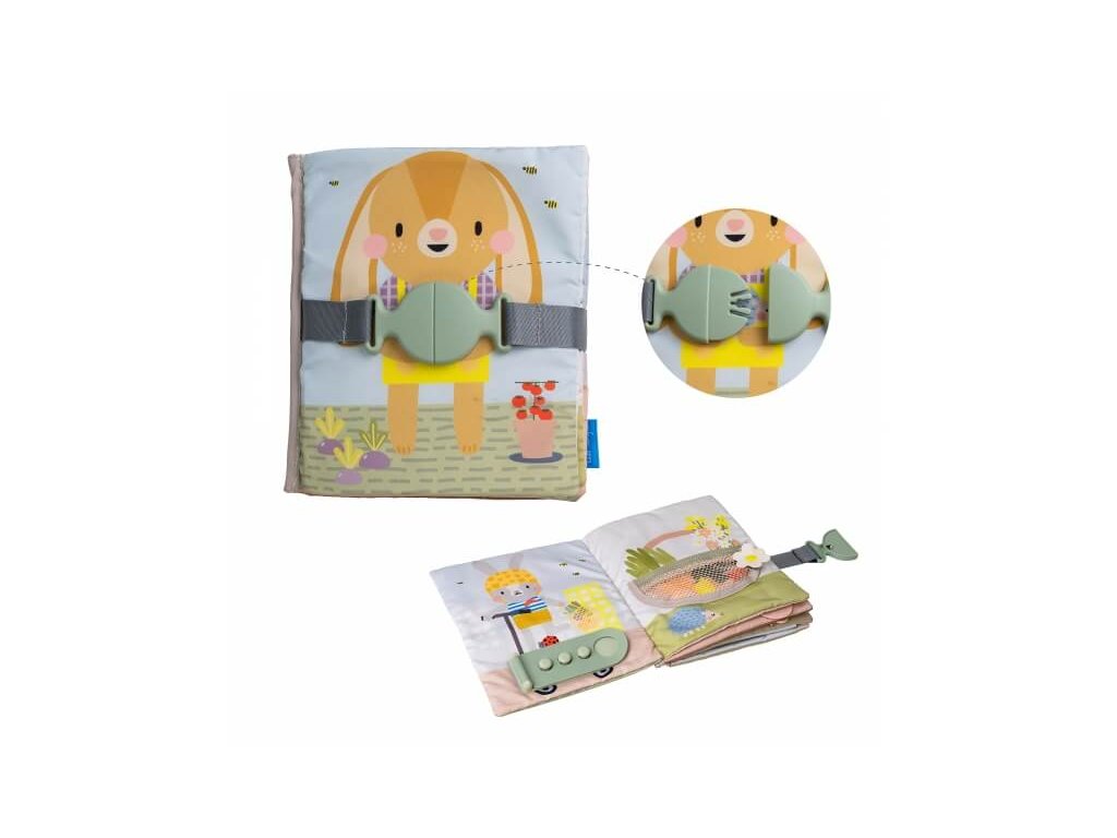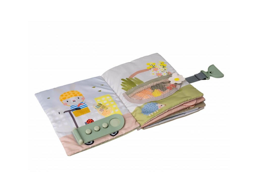 My 1st Busy Book od značky Taf Toys je mäkká látková knižka plná interaktívnych prvkov, navrhnutá pre deti od 18 mesiacov.