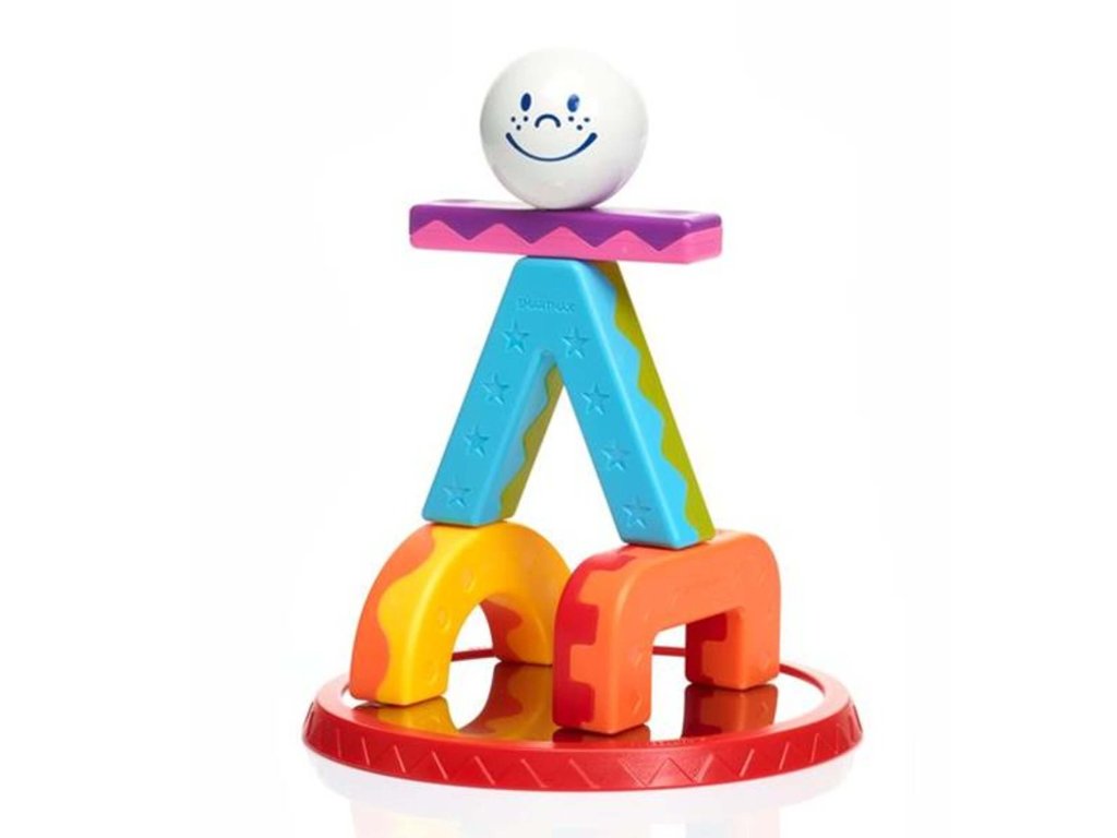 V sade nájdete 6 farebných tvarov (magnetických tyčí) a 3 guľôčky s tvárami, ktoré možno stavať na magnetickú základňu alebo kombinovať podľa 24 predlohových kariet alebo vlastnej fantázie.
