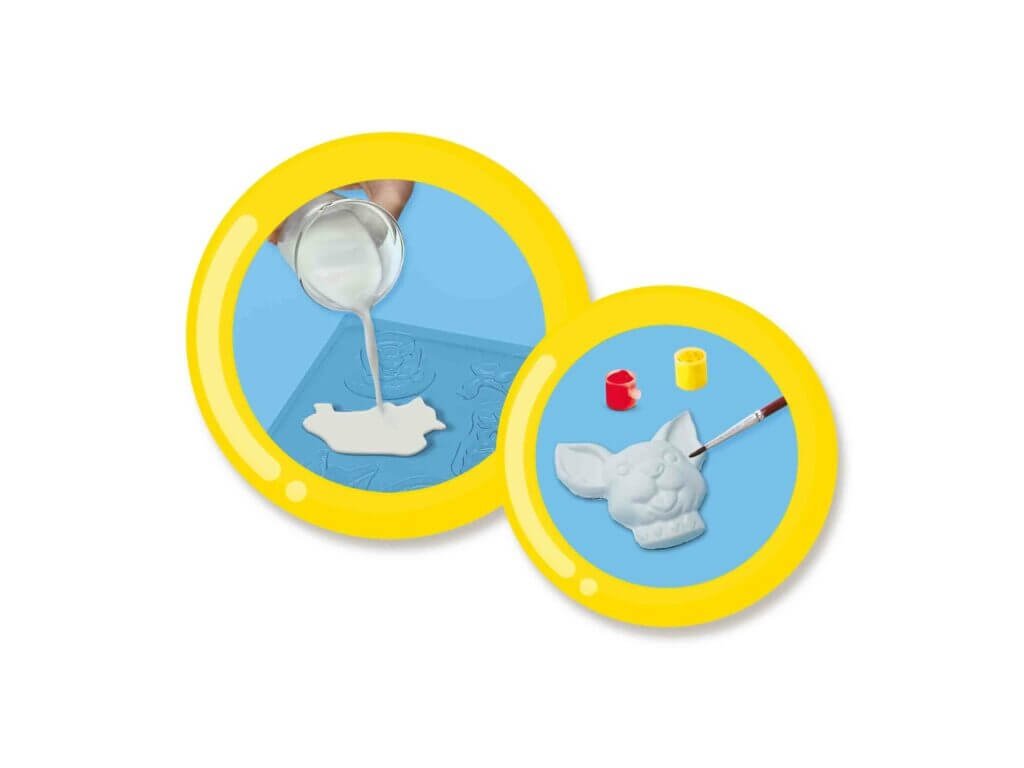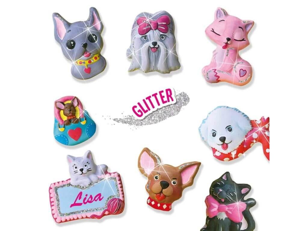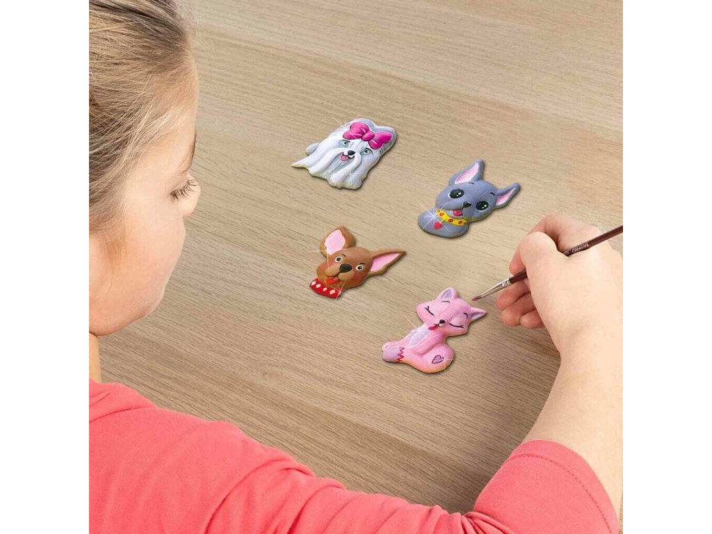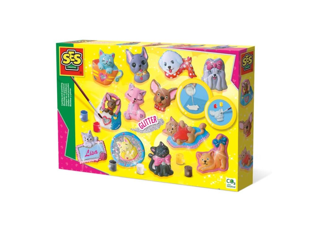 Deti môžu vytvárať vlastné figúrky mačičiek a psíkov a ďalších motívov pomocou rýchloschnúcej sadry. Po odliatí si môžu svoje výtvory vymaľovať priloženými farbami a ozdobiť trblietkami. Tento set podporuje kreativitu, jemnú motoriku a predstavivosť detí.