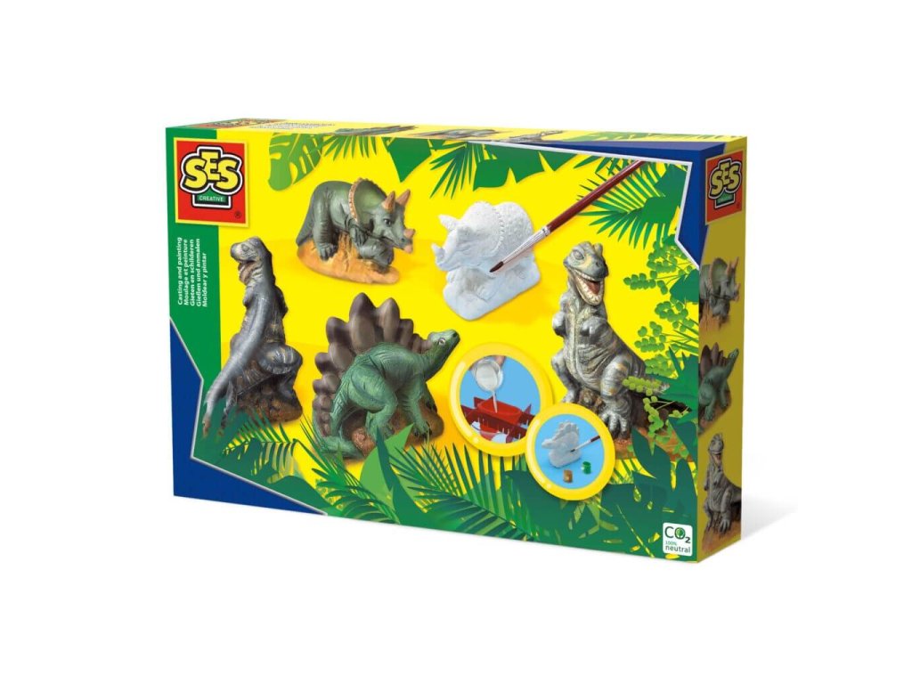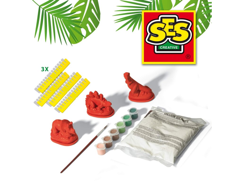 Deti môžu vytvárať vlastné trojrozmerné figúrky dinosaurov pomocou rýchloschnúcej sadry. Po odliatí si môžu svoje výtvory vymaľovať priloženými farbami. Tento set podporuje kreativitu, jemnú motoriku a predstavivosť detí.