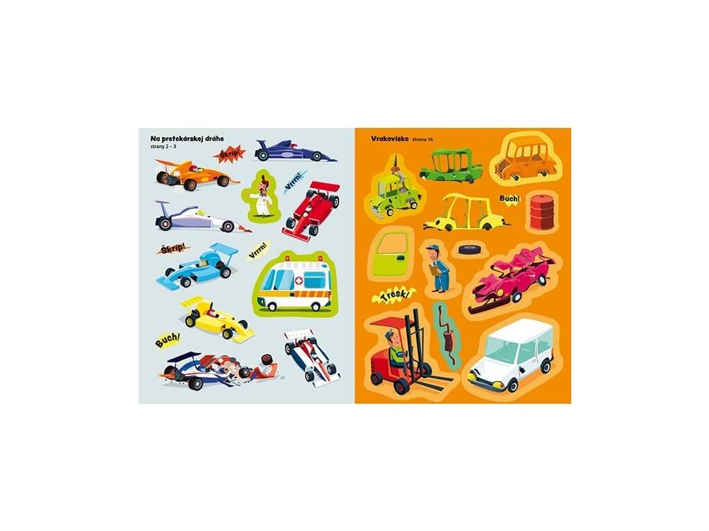 Táto knižka obsahuje viac ako 110 farebných samolepiek s rôznymi autami, ktoré deti môžu umiestňovať na rôzne scény a vytvárať tak jedinečné obrázky.
