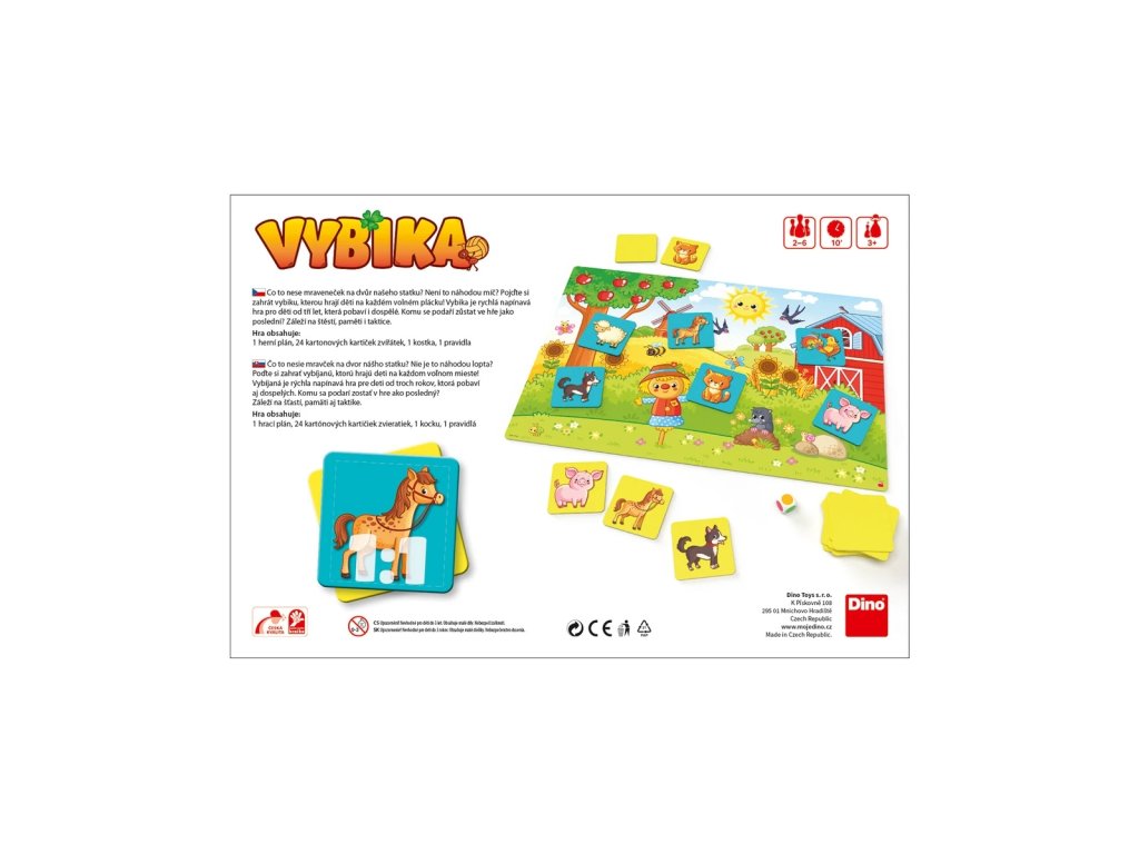 Vybika od značky Dino je rýchla a veselá spoločenská hra pre 2 až 6 hráčov, ktorá zabaví deti od 3 rokov.