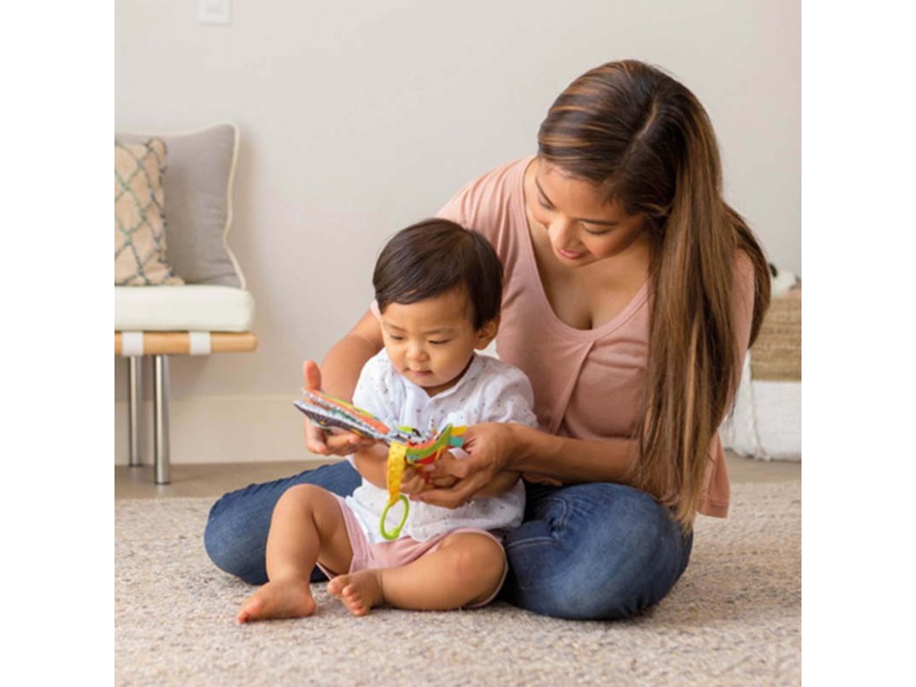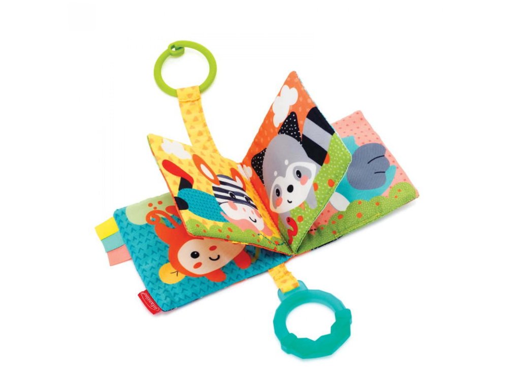 Závesná textilná knižka od značky Infantino ponúka bábätku zmyslový zážitok od narodenia.